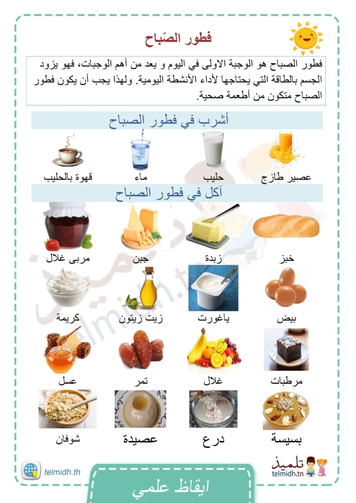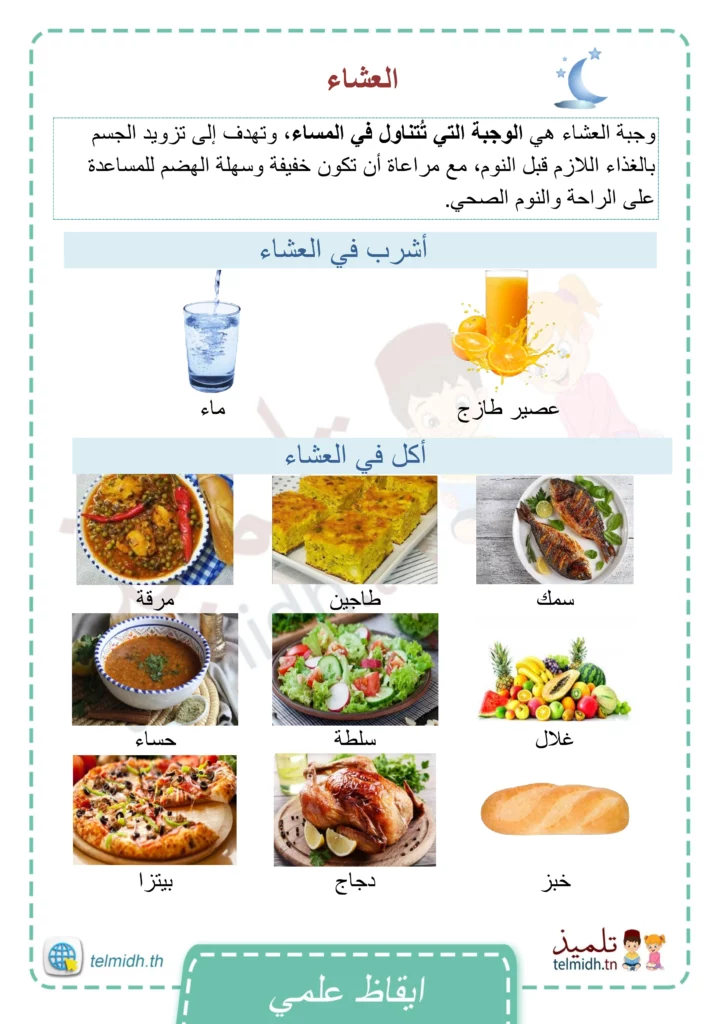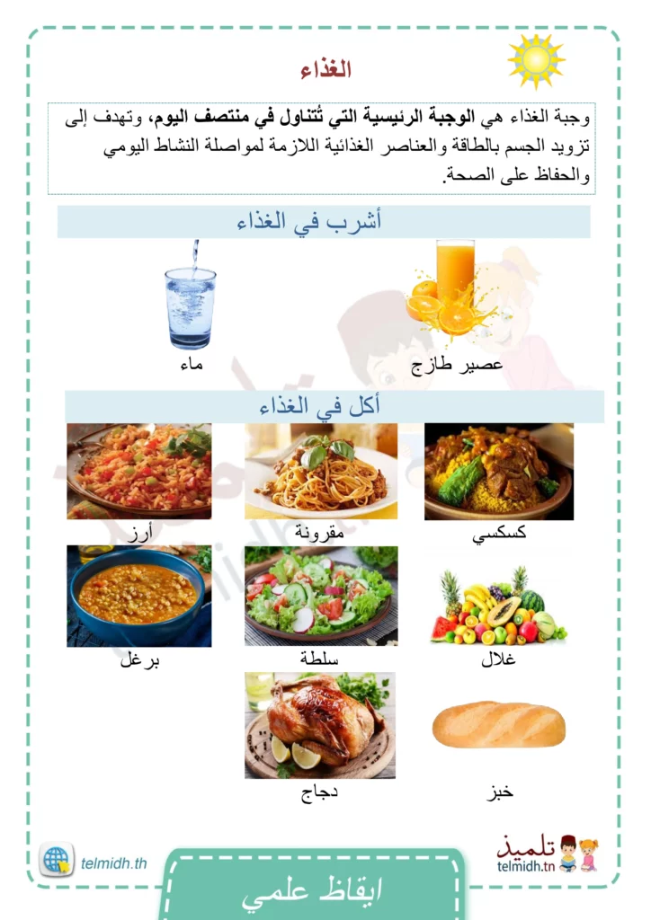 يتناول الانسان ثلاث وجبات في اليوم . فطور الصباح، الغذاء والعشاء